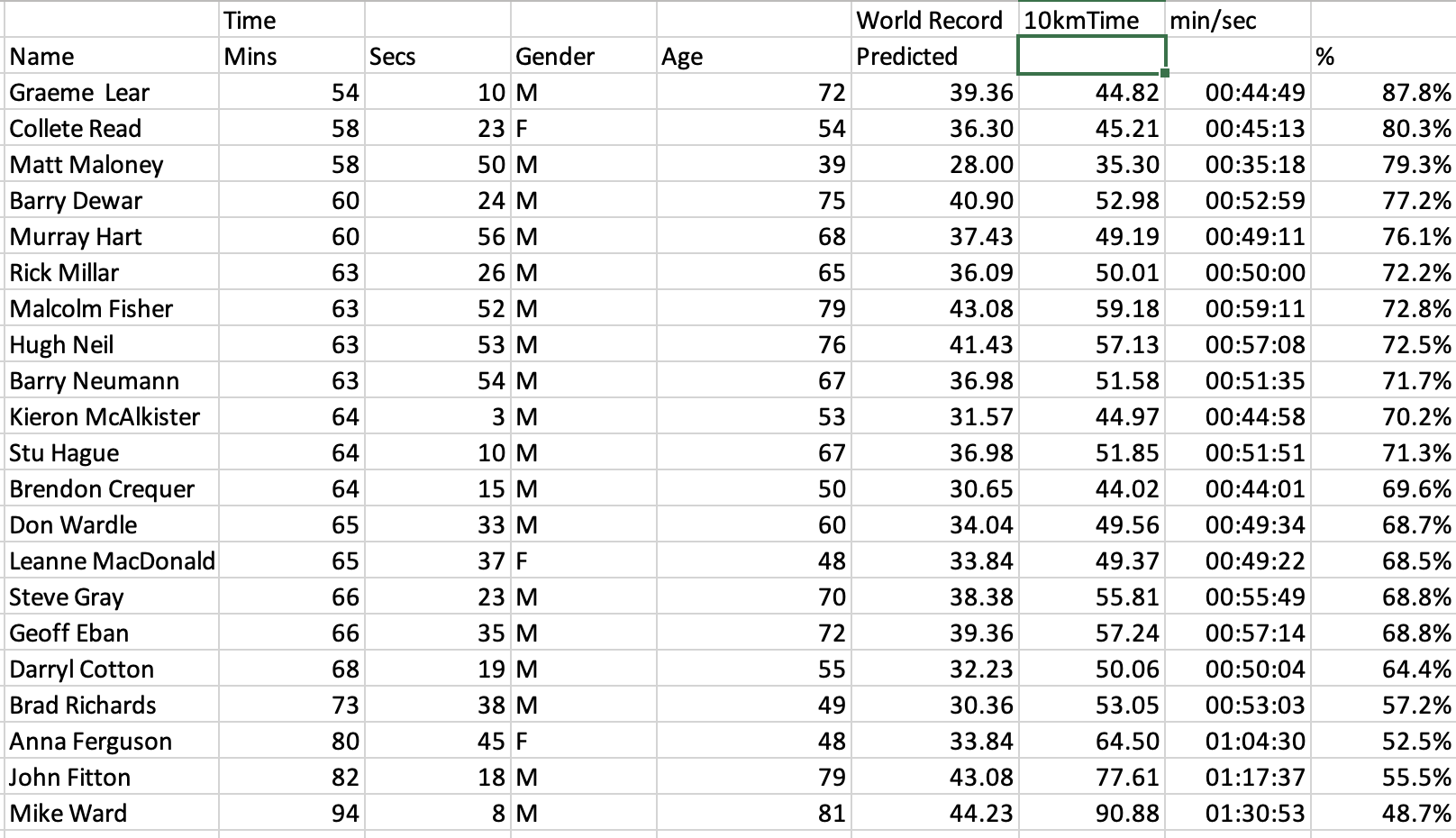 Age Grade Run (Maitai) – 27-09-2025